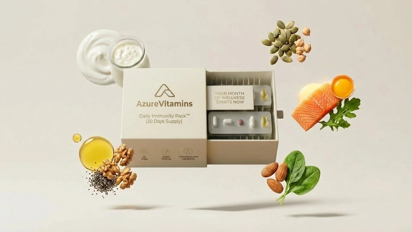 Every supplement inside AzureVitamins™ Daily Pack is supported by high-quality clinical research — including human studies on Vitamin D3 + K2, magnesium, zinc, omega-3 fatty acids, and probiotics.